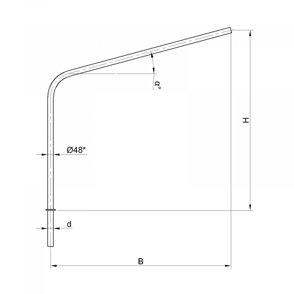 Однорожковые кронштейны К2-1,0-1,5-0-1 предназначен для крепления светильника на трубчатой опоре освещения. Завод опор освещения «Альдекс» изготавливает однорожковые консольные кронштейны из стального проката. Собственное производство позволяет выполнять изделия надлежащего качества и в кратчайшие сроки. Конструкция однорожковых кронштейнов К2-1,0-1,5-0-1. Конструкция консольных однорожковых кронштейнов К2-1,0-1,5-0-1 представляет собой гнутую металлическую трубу заданных размеров.