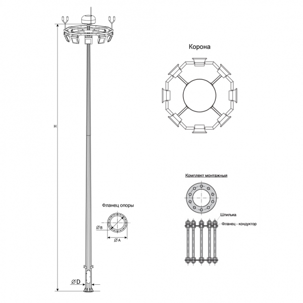 Прожекторная мачта освещения металлическая оцинкованная ПМО-30, изготовленная по ГОСТ.